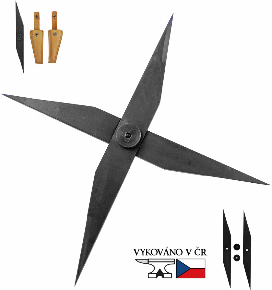 Tato skládací vrhací hvězdice byla vyrobena přesně podle originálu našimi předními českými kováři a jedná se o vysoce kvalitní produkt.