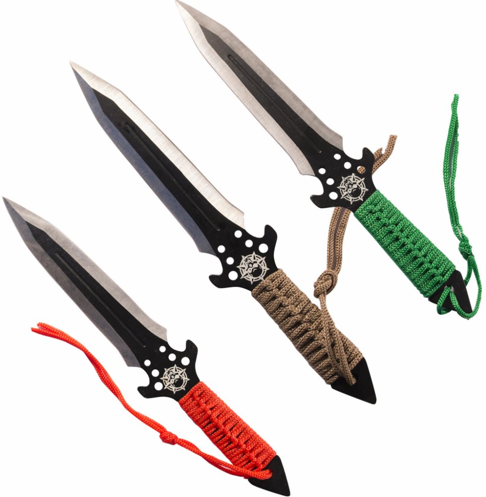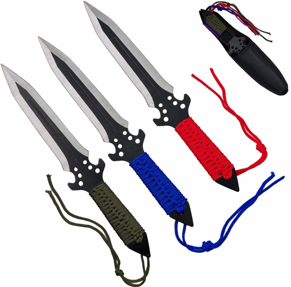 Díky své špičce se tyto vrhací nože skvěle zabodávají a žádné měkké dřevo jim neodolá. Dodáváme je v černém nylonovém pouzdře jako bonus, ve kterém můžou nože odpočívat při přenosu. Vrhací nože "SKULL CRASHER" jsou v sadě hned po 3 kusech.