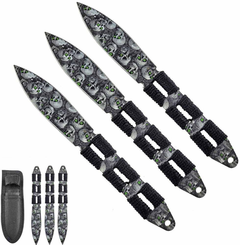 Vyhledejte napětí a adrenalinovou zábavu s vrhacími noži z pevné nerezové oceli!!! S noži které nejen dobře fungují, ale také vypadají hodně COOL! Představujeme Vám nože "PLACE OF SKULLS", které Vás nezklamou a budete se s nimi cítit jako velký frajer!
