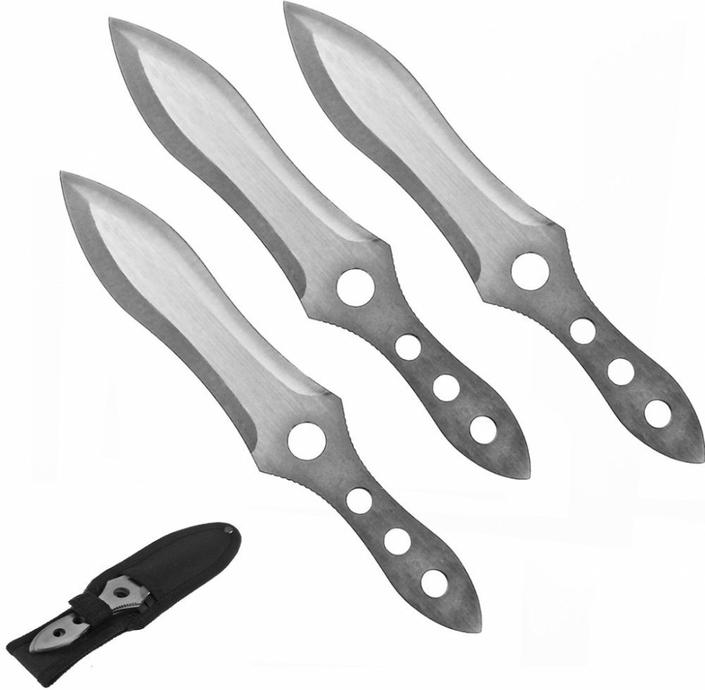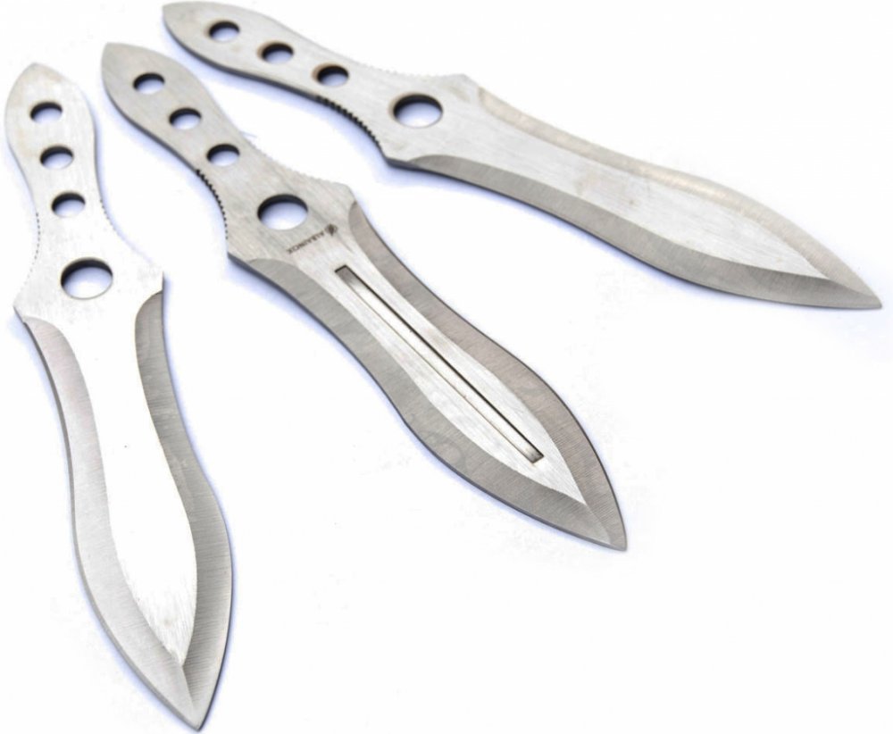 Vrhací nože "SWORD to FLY" jsou hned 3 v jedné sadě! Všechny jsou stejně dlouhé a těžké, každý z nich měří 20 cm a cca dvě třetiny tvoří široká čepel zakončená ostrou špičkou.Ostří čepele je ostře broušené z jedné strany - vrhací nože "SWORD to FLY" mohou posloužit i pro ukrojení či přeříznutí materiálu.