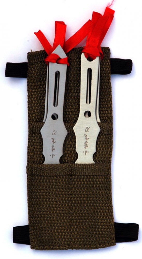 Jeden nůž ze sady měří od špice po konec 13,5 cm. Vrhací nože "ARMY" obsahují na koncích pruhy červené látky, které při vrhání "spodem" fungují jako letky! Jsou dodávány s vojenským pouzdrem, díky kterému je lze pohodlně nosit nejen za páskem, ale též skrytě pod rukávy apod.