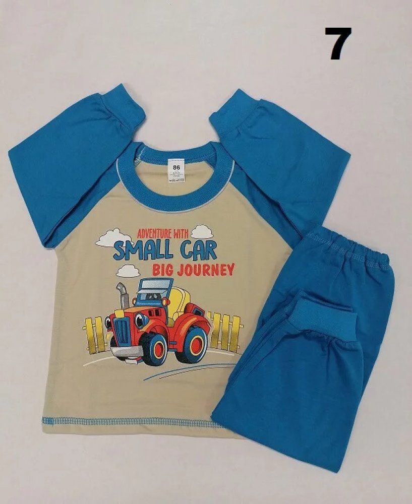 Dětské pyžamo pro malé kluky s dlouhým rukávem a dlouhými kalhotami ukončené patentem, vyrobeno ze 100% bavlny, motiv - auta. Dostupné ve více barevných kombinacích s různým potiskem.