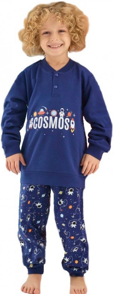 Modré pyžamo pro kluky na knoflíky, hvězdy, vesmír a kosmonauti