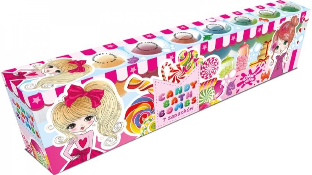 Chlapu Chlap Candy Shop, 7x50 g, Šumivé koule pro děti pro děti, Nejlepší způsob, jak dostat miminka a děti do vany bez protestů, je udělat z koupání zábavu, na kterou se budou těšit. Přípravek Chlapu Chlap Candy Shop vytvoří při každém koupání vašich nejmenších veselou atmosféru, a navíc zanechá citlivou dětskou pokožku dokonale čistou a provoněnou. Než se nadějete, stane se z koupání příjemný ri...