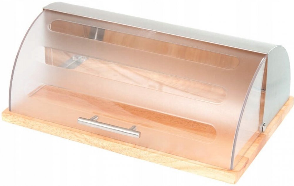 Chlebník GRANDE 39 cm slouží k uchovávání všech druhů pečiva. Je vyroben z nerezu v matovém provedení, víko plast, základna dřevěná - gumovníkové dřevo, výška 1,60 cm, typ nerezu: 18/0, síla nerezi 0,40 mm, rozměry: 39 x 28,5 x 15 cm.