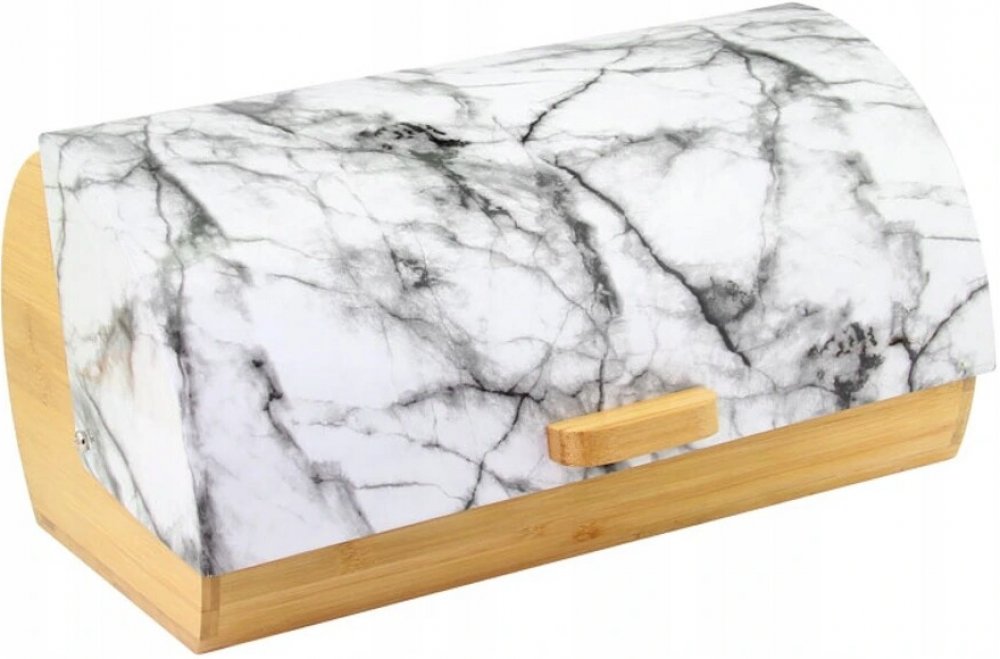 Chlebník v moderním designu je vyroben z vysoce odolného lakovaného kovu a bambusu.
