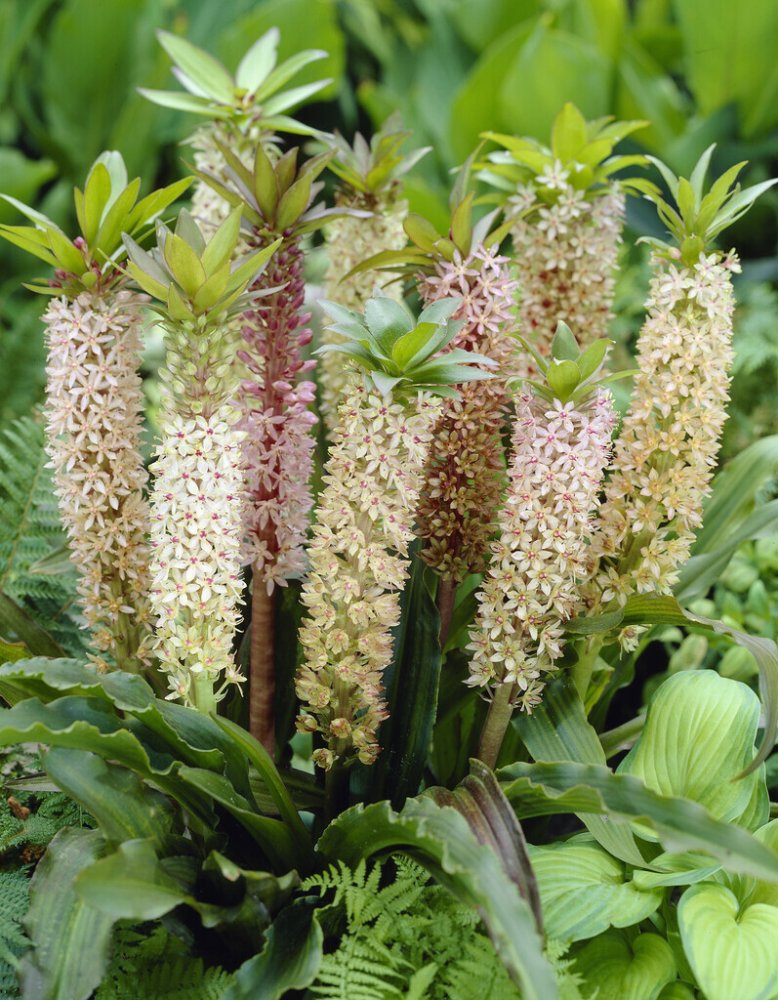 Chocholatice Comosa je zajímavá nejen svými květy. Má také karmínově skvrnité listy na spodní straně a kropenatý je i stvol. Hroznovité květenství je zelenavě bílé barvy s nafialovělým nádechem. Nejlépe se hodí jako solitér v sousedství dalších exotických rostlin.