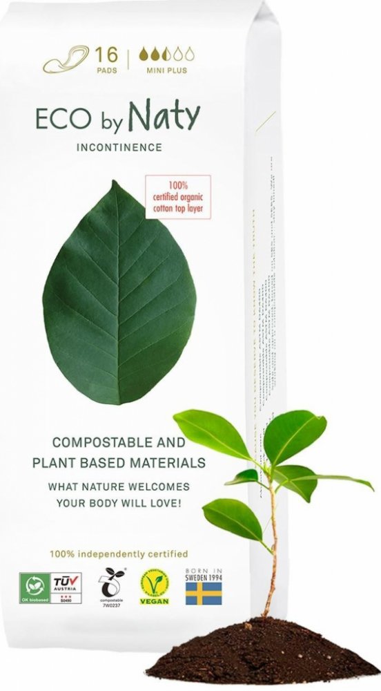 Dámské inkontinenční vložky Mini plus Eco by Naty jsou ideální volbou pro ženy v každém věku, které dbají o své zdraví a krásu. Vyrobené z kompostovatelných materiálů na rostlinné bázi s organickou bavlnou pro maximální pohodlí. S certifikací OK biobased a bez obsahu chemikálií či parfémů jsou šetrné k pokožce i životnímu prostředí. Získejte diskrétní a spolehlivou ochranu s vložkami Eco by Naty a...