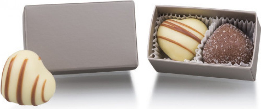 Velmi elegantní balení na 2 ručně vyrobené pralinky. To je ideální řešení na občerstvení/poděkování pro svatební hosty.