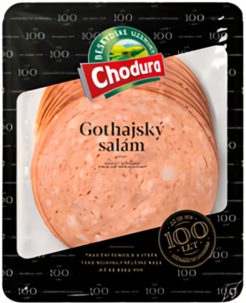 -- Balení obsahuje 100 g plátků Chodura Gothajského salámu.