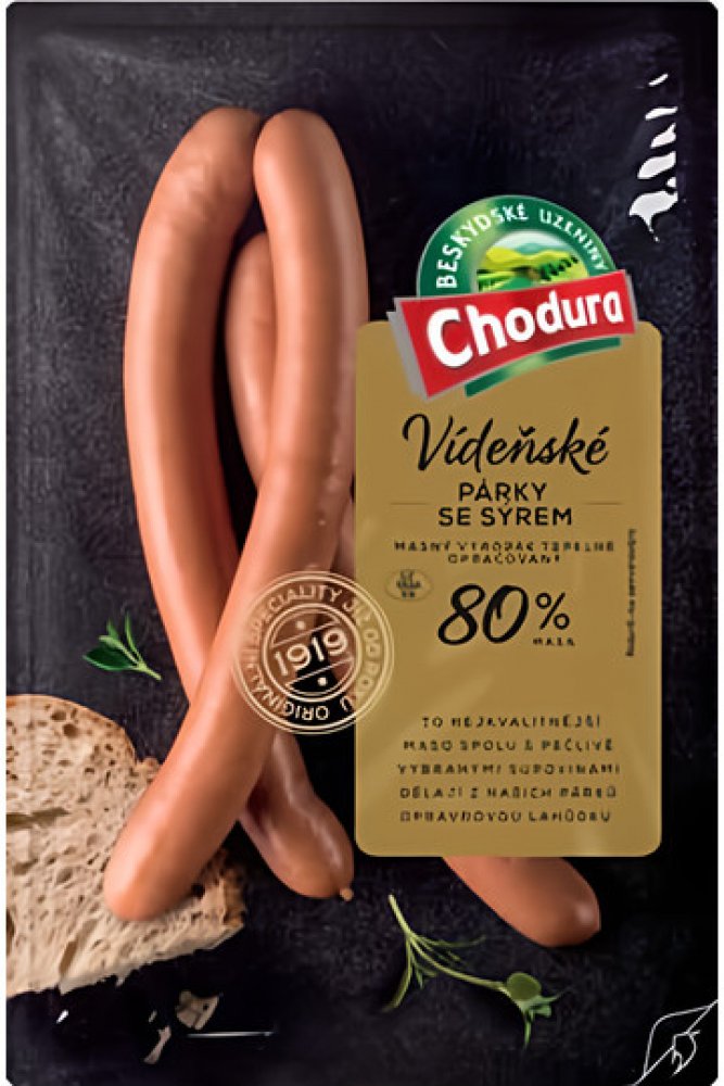 Značka Chodura je symbolem uzenářského mistrovství a smyslu pro kvalitu. Jejím posláním je přinášet zákazníkům originální speciality výjimečných kvalit pro skutečné gurmánské zážitky. Tak, jako tomu bylo již téměř před sto lety. V současnosti společnost Beskydské uzeniny zaujímá významné místo mezi středně velkými zpracovateli masa a výrobci masných výrobků v ČR. Hlavním sídlem společnosti je Frýdek-Místek, kde se nachází výrobní závod společně s administrativním zázemím. Moderní logistické centrum, ze kterého jsou výrobky distribuovány zákazníkům, se nahází v nedalekých Fryčovicích. O výrobku: Variace na oblíbené výběrové párky. Tradiční chuť spolu se sýrem vytváří nový gurmánský zážitek. Baleno v ochranné atmosféře.