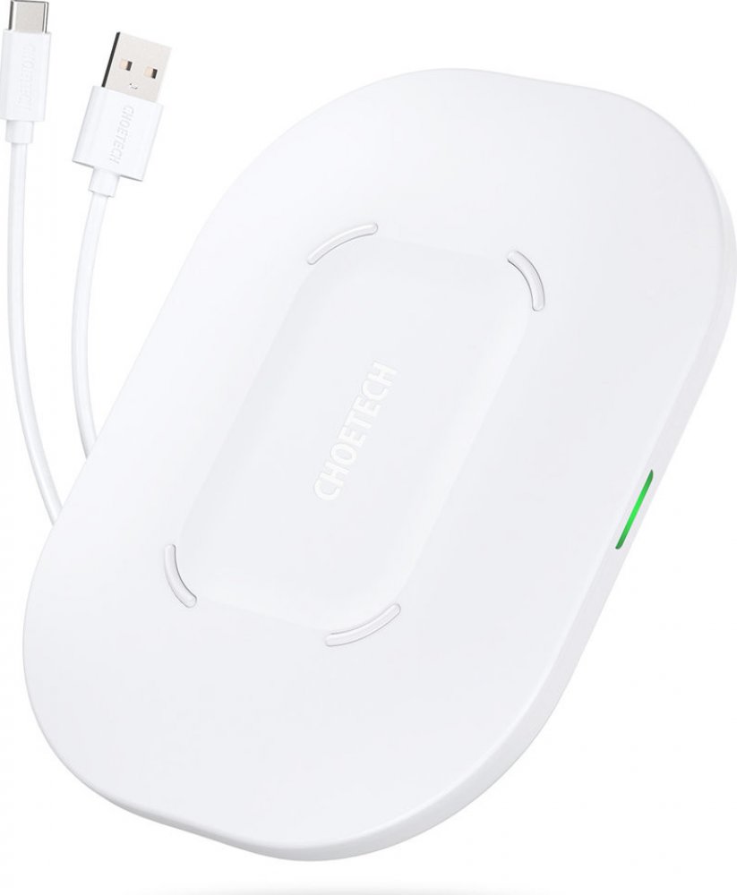 Bezdrátová nabíječka Qi Choetech 15W + 1m kabel USB - USB typu C - bílá (T550-F-V2) Skvělý dárek pro uživatele sluchátek AirPods a telefonů s bezdrátovým nabíjením. Tato nabíječka s kabelem USB - USB typu C v sadě nabíjí vaše mobilní zařízení výkonem až 15 W. Je kompaktní a praktická. Můžete ji nechat zapnutou i v noci - váš spánek nebudou rušit zbytečná světla. Nabíječka dokonale odvádí teplo a z...