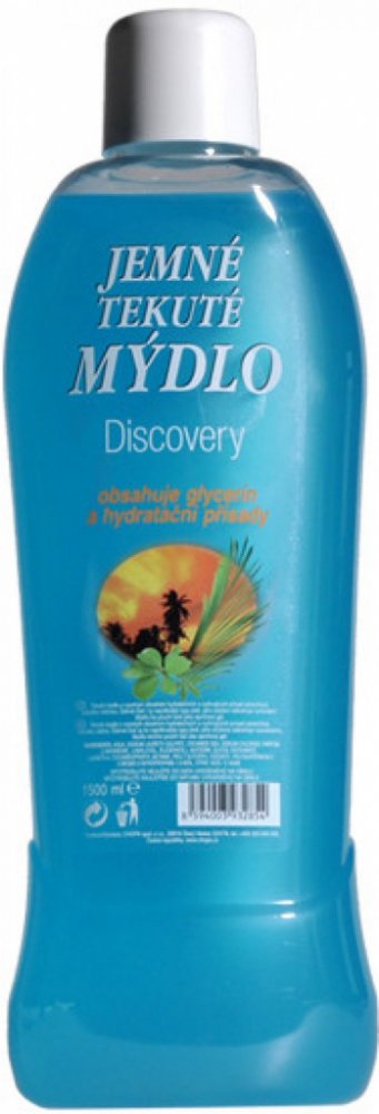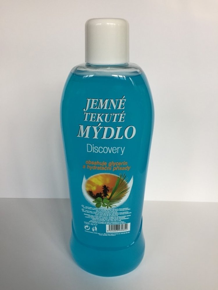 Jemné tekuté mýdlo discovery 1500ml. Tekutá mýdla s vysokým obsahem hydratačních a vyživujících přísad zanechávají pokožku vláčnou. Šetrně čistí a zabraňují vysoušení pokožky.