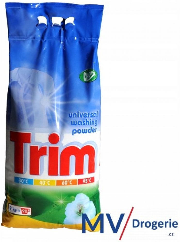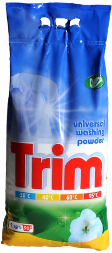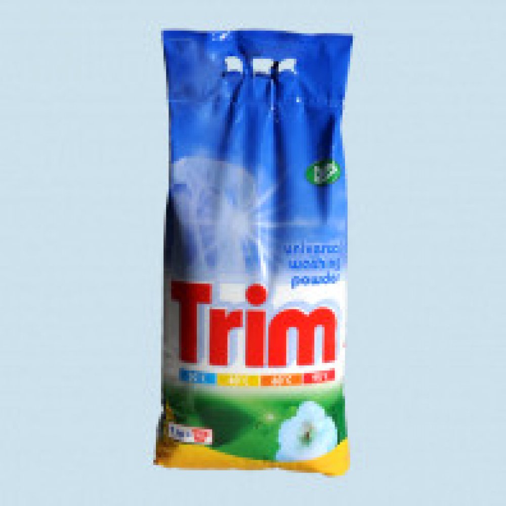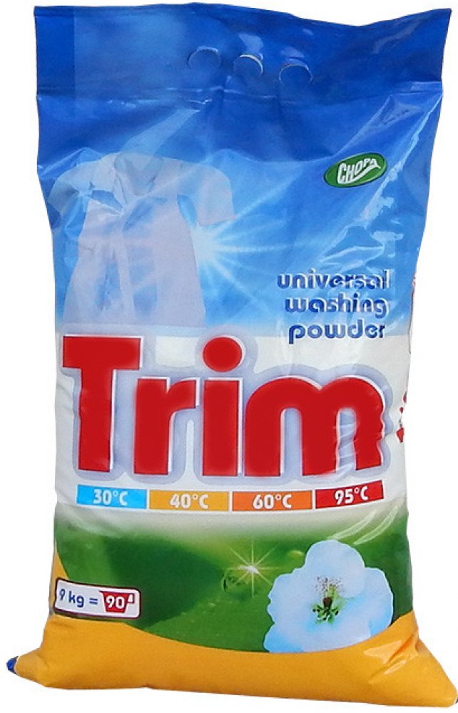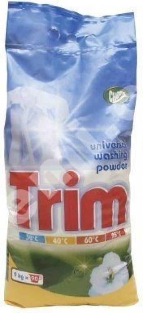 Univerzální prací prášek TRIM vhodný na praní, předpírání a namáčení pro všechny druhy praček na bílé i barevné prádlo s příjemnou vůní. Vhodný jak pro praní, předpírání, tak i pro namáčení. Po ukončení praní prádlo dokonale vymáchejte. Není vhodný pro praní vlny a hedvábí. Uchovávejte mimo dosah dětí. Skladujte v suchu a chladu.