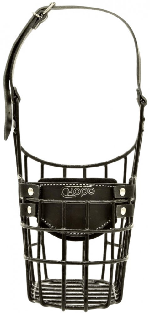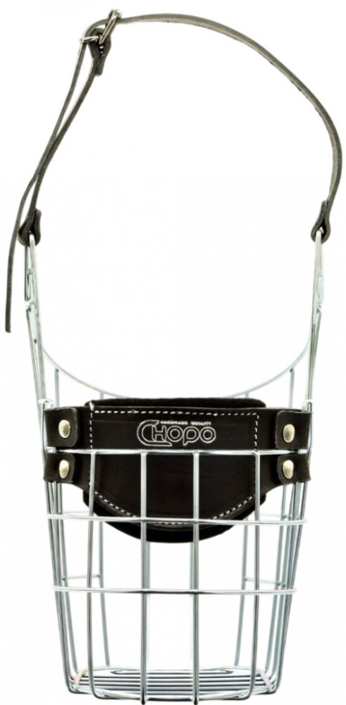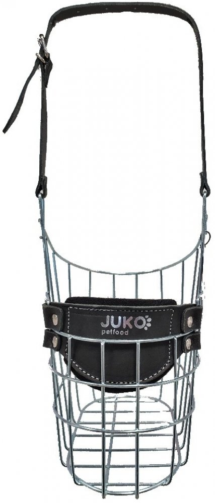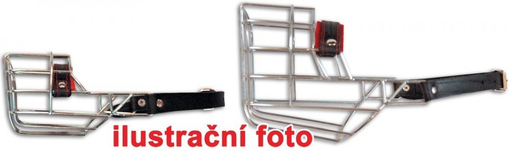 Kovový náhubek s upínacími řemínky z pravé kůže. Kvalitní černým gumoplastem potažený kov zajišťuje kvalitu a dlouhověkost výrobku. Díky potahu kovová konstrukce nemůže korodovat a náhubek v zimě nepřimrzá k psímu čenichu. Zároveň je výrobek snadno omyvatelný.