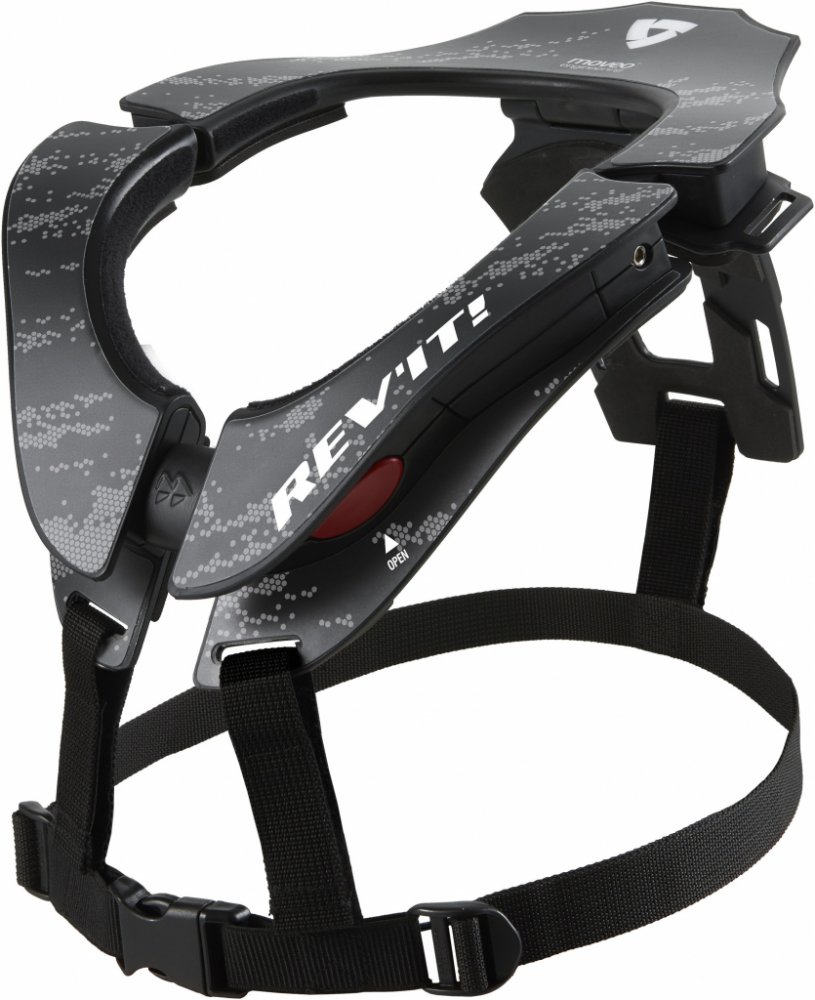 CE-certifikovaný Segur pomáhá omezit možná zranění krku způsobená hyper-flexí, hyper-extenzí, axiálním zatížením, smykovým zatížením, laterální hyper-flexí a whiplash omezením rotace a přenesením nadměrného zatížení z krku do zbytku těla. Je plně nastavitelný a pro zajištění maximálního pohodlí lze velikost nákrčníku změnit pomocí bočního nastavovacího systému. Postranní profil a tvar hrudníku lze upravit namontováním dodávaného polstrování z EVA pěny. Vzhledem k nízkoprofilové zadní části nezasahuje do přilby jezdce. Segur lze také snadno otevřít a zavřít pomocí vysoce kvalitního kovového předního upevňovacího systému. Nastavitelný zadní sloupek této krční ortézy je sklopný, takže při nepoužívání zabírá mnohem méně místa. Krční límec je dodáván s úložným vakem pro jeho ochranu, když se nepoužívá nebo během přepravy. Segur se pohodlně připojí k výběru REV'IT! bundy s vyhrazenou připojovací sadou, která je součástí balení. Složení 100% polyamid Velikost UNI