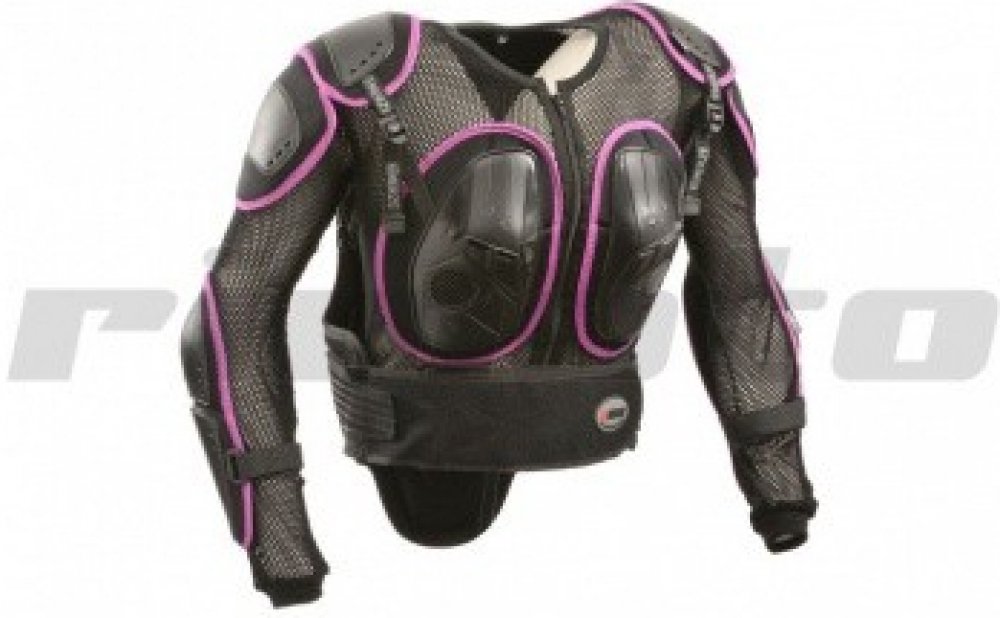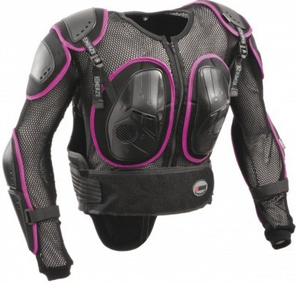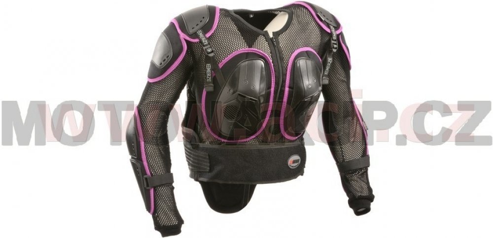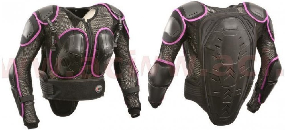 - Dámská sportovní vesta složená z chráničů hrudi, páteře, ramen, loktů a předloktí.