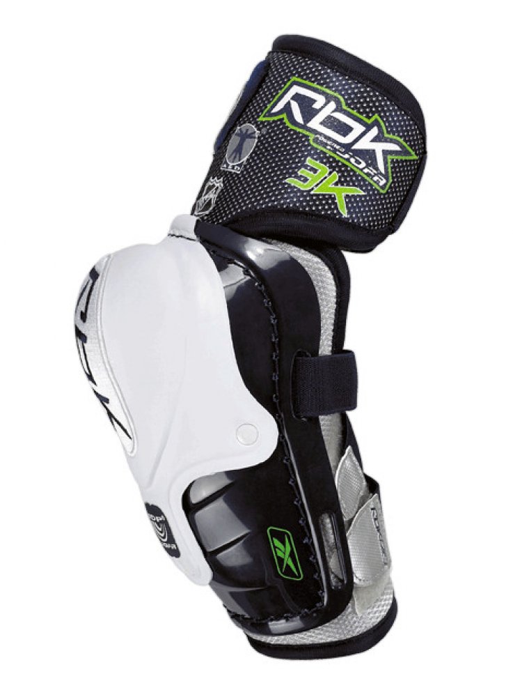 Akce - chrániče loktů RBK 3K (dříve Jofa) s dvoudílnou kloubovou konstrukcí umožňují výbornou pohyblivost ruky při hře.Asymetrická konstrukce chráničů zajišťuje kvalitní ochranu rukou. Tvar a konstrukce skeletu zabezpečuje výbornou ochranu samotného loketního kloubu proti úderům. Dobrá ochrana předloktí, prodloužený chránič bicepsu. Uchycení chráničů je třemi pásky se suchým zipem. Výprodej poslední velikosti RBK 4 (zhruba pro hráče s výškou okolo 155 cm - 165 cm) za atraktivní cenu!