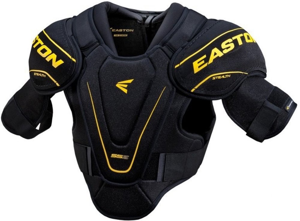Novinka 2013/14. Extrémně lehké a skvěle padnoucí hrániče ramen pro rekreační hráče. Pohodlné chrániče s flexibilní konstrukcí pro neomezený pohyb a výbornou ochranu všech důležitých partií. Nový atraktivní černo-žlutý design, shodný s TOP modelem Easton STEALTH RS.