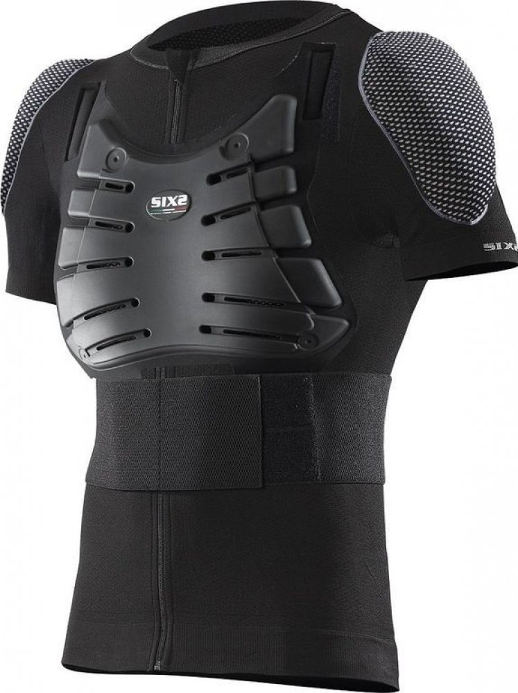 Tričko se zipem a krátkým rukávem je vyrobeno ze zesíleného karbonového materiálu. Zesílený materiál Carbon Underwear zaručuje stejnou prodyšnost a termoregulační vlastnosti jako ostatní funkční prádlo SIXS, ale díky zvýšené hustotě umožňuje použití chráničů a drží je pevně na svém místě. Chráničové tričko je extrémně přizpůsobitelné v závislosti na potřebách, umožňuje kdykoliv vyjmout chrániče, pokud Vás omezují v pohybu. Chránič páteře je taktéž vyjímatelný. Pásek na suchý zip napomáhá udržet chránič na svém místě. Chránič hrudi (CE certifikovaný) je odvětraný a lze jej snadno upevnit a ideálně umístit díky upevnění na suchých zipech. Chráničové tričko je kompatibilní se všemi typy chráničů krční páteře a je vybaven protektory CE Level 2 (SAS-TEC). Nová řada produktů SIXS s chrániči SAS-TEC dokonale splní potřebu ochrany a bezpečnosti, ale také volnosti pohybu při všech sportech. Praktické kapsy udrží protektory, které jsou dokonale umístěny na důležitých místech. Chrániče jsou měkké a pohodlné, ale v případě nárazu během několika milisekund ztvrdnou. Díky těmto vlastnostem, spolu se standardní termoregulací a prodyšností produktů SIXS, jsou chrániče SIXS ideálním řešením pro každého, kdo vyžaduje maximální pohodlí a ochranu současně.