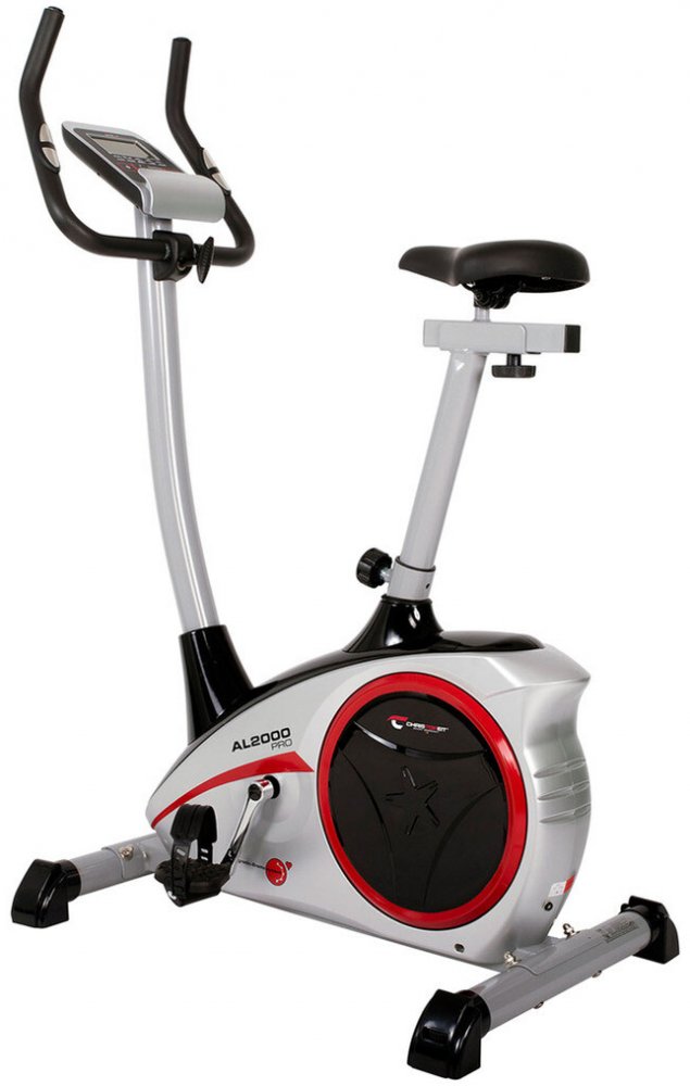 Christopeit Rotoped "AL 2000" Vlastnosti Počítač s podsvícením a s držákem pro a smartphone Velký LCD displej, 6 zobrazovacích oken s ukazateli: čas, rychlost, vzdálenost; přibližný výdej kalorií; otáčky pedálů; watt a tepová frekvence Uživatelské programy umožňují zadat osobní limity: čas, vzdálenost; tepová frekvence a watt Překročení limitů se zobrazí Zobrazení fitness testu Přijímač pro bezdrá...