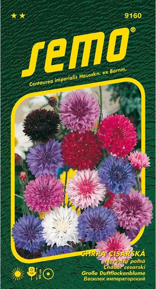 Chrpa císařská směs barev je směs bílých, modrých, růžových a karmínových plných květů, dosahující výšky 90 cm. Tato letnička roste rychle, má vzpřímený a silně rozvětvený vzrůst, s kopinatými, úzkými, šedozelenými listy a kvete od června do září. Je ideální pro skupinové výsadby a k řezu, kde květiny ve váze vydrží až 10 dní.