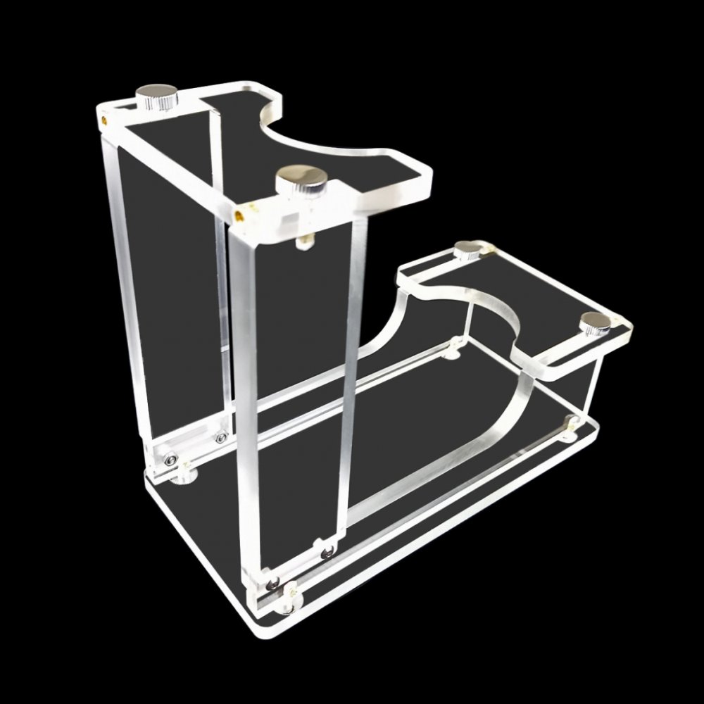 Pevný stojánek z tvrdého, transparentního plastu. Tento stojánek je složen ze sedmi částí, které jednoduše spojíte pomocí šroubků dodaných v balení. Sestavení je rychlé a snadné, takže se nemusíte bát žádných komplikací.