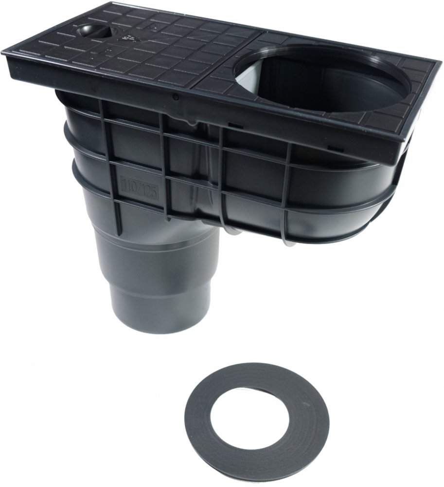 Obsahuje suchou protizápachovou klapku zabraňující zpětnému zápachu z kanalizačního potrubí. Výrobek má kombinovaný odtok D 110/125 mm.