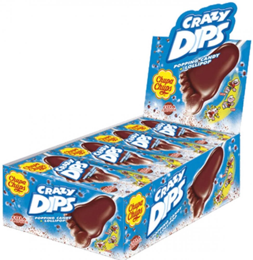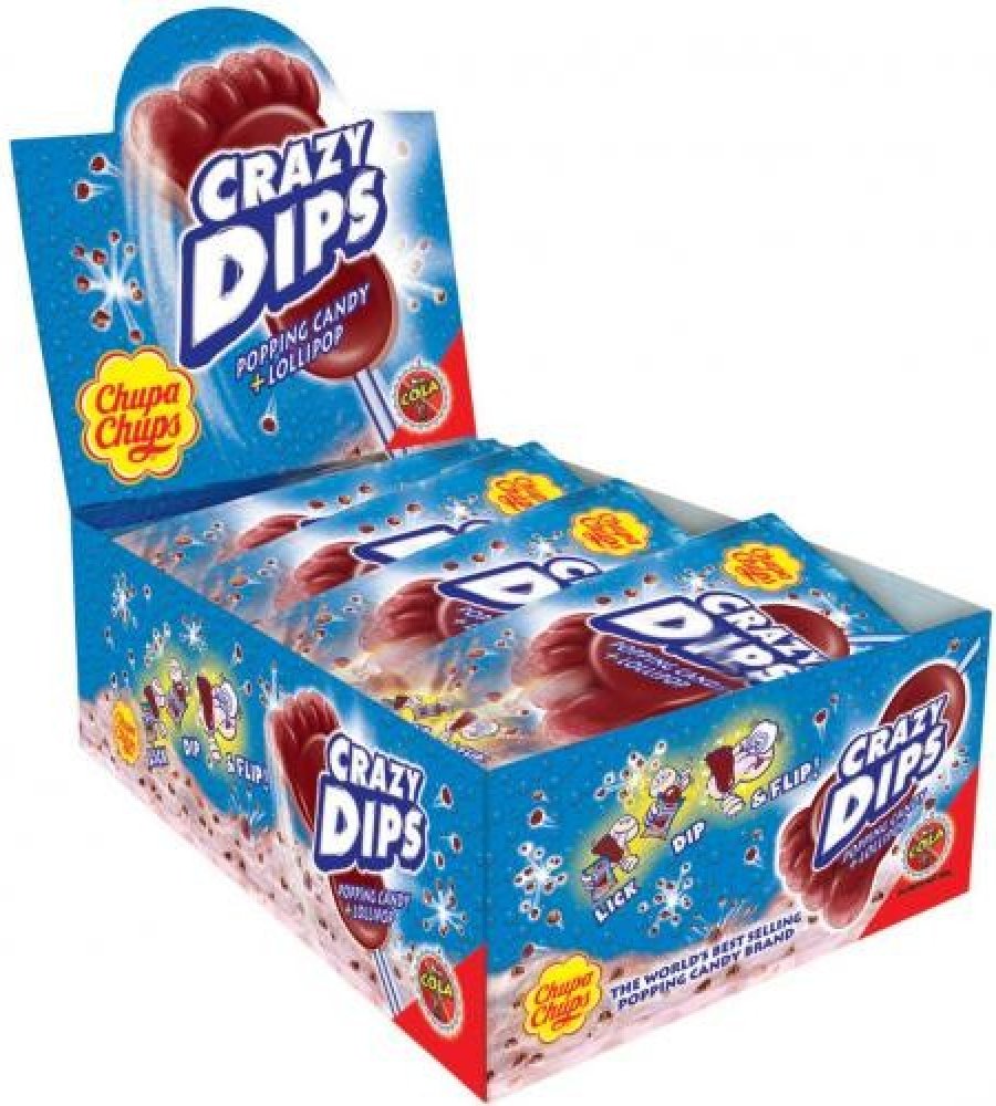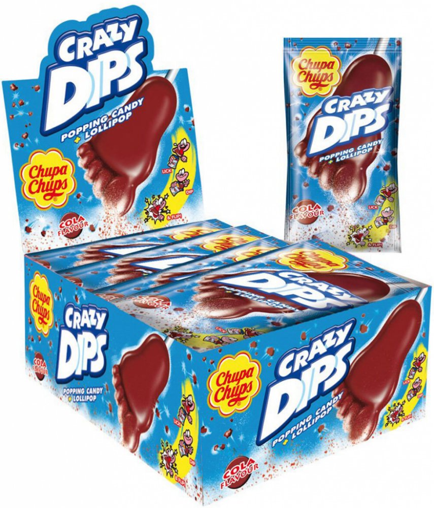 Chupa Chups Crazy Dips lízátka s příchutí koly 14g balení 24 ksLízátka na nohou od Chupa Chups přinášejí vzpomínky na dětství. Lízátko se dá namočit do šumivého nápoje a přináší příjemný pocit brnění v ústech. Praskající granule chutnají po lahodné cole a v ústech začnou praskat. Sladká pochoutka pro malé i velké. CFP Brands Süßwarenhandels GmbH & Co. KG Kaistraße 5 D-40221 Düsseldorf