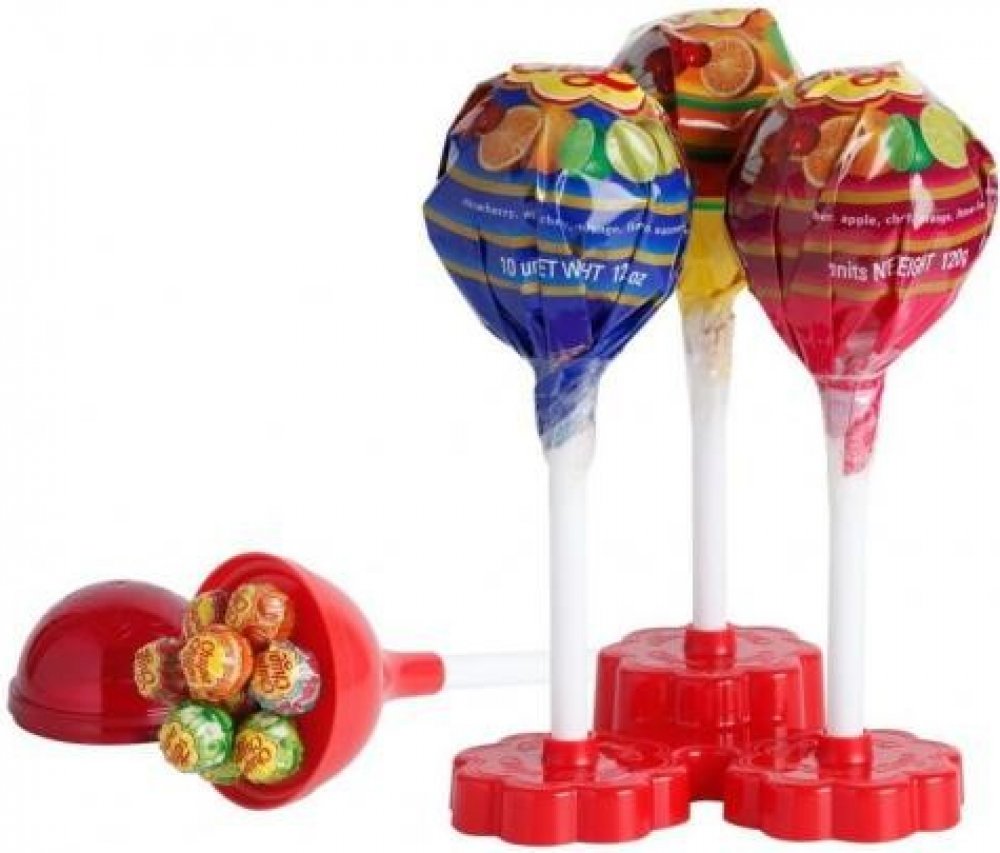 Velké lízátko je naplněno 10 kusy lízátek Chupa Chups s ovocnými příchutěmi. 20x více zábavy v jednom lízátku! Ideální produkt jako dárek.