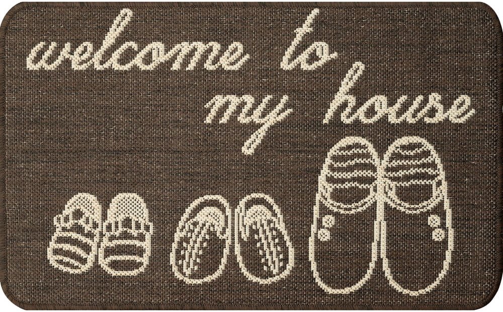 Rohož Leon se vzorem bot a vítacím nápisem v hnědé barvě je vyrobena z polypropylenové příze ve šňůrkovém provedení díky čemuž je praktická a nenáročná na údržbu. Rohož je vhodnější pro použití v interiéru, ale můžete ji dát také před dveře v chodbách bytových domů.