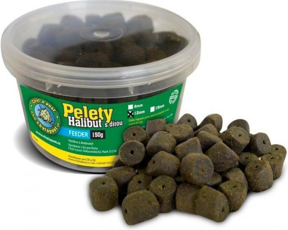 Halibut pelety s dírkou na bázi rybích mouček Vám zaručí skvělé úlovky. Vyrobeno dle originální receptury. Halibut pelety s dírkou na bázi rybích mouček Vám zaručí skvělé úlovky. Jsou vhodné na vnadění, ale také na samostatné chytání na vlas. Možno kombinovat s boilies. Doba rozpadu závisí na průměru, teplotě a průtahu vody. Dobu můžete prodloužit nadipováním pelety lososovým a nebo halibut olejem...