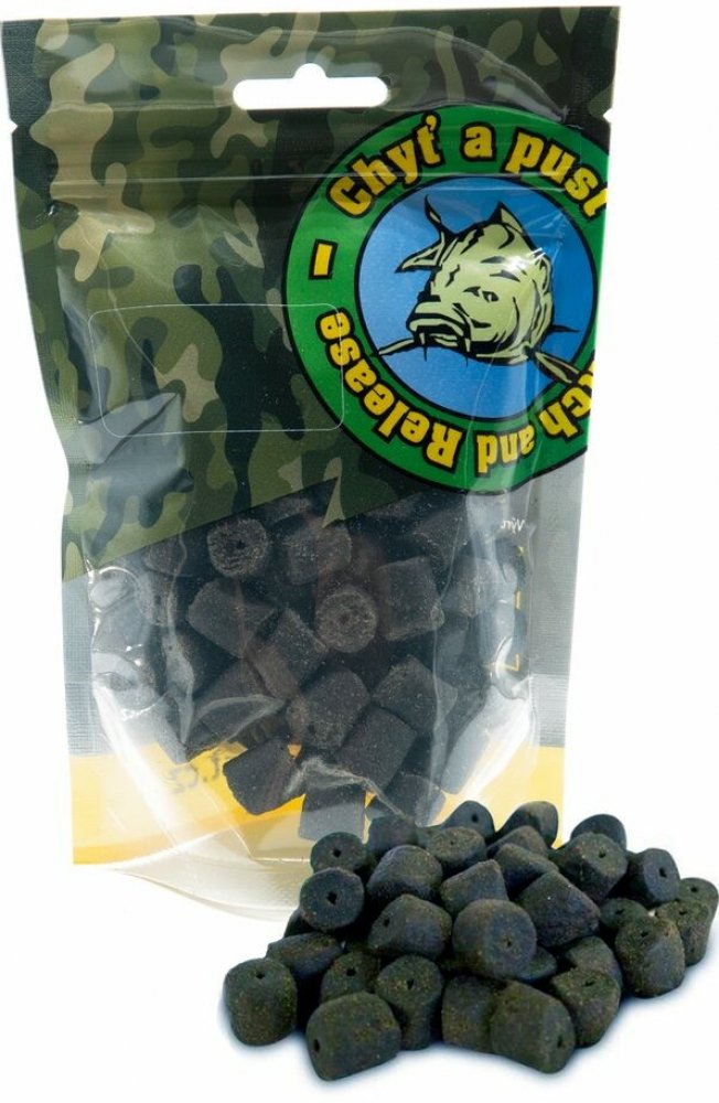 Halibut pelety s dírkou na bázi rybích mouček Vám zaručí skvělé úlovky. Vyrobeno dle originální receptury. Halibut pelety s dírkou na bázi rybích mouček Vám zaručí skvělé úlovky. Jsou vhodné na vnadění, ale také na samostatné chytání na vlas. Možno kombinovat s boilies. Doba rozpadu závisí na průměru, teplotě a průtahu vody. Dobu můžete prodloužit nadipováním pelety lososovým a nebo halibut olejem a zakápnutí dirky voskem ze svíčky. Svíčka nesmí být aromatická. Tato atraktivní nástraha je nejúčinnější v letních měsících při vyšší teplotě vody. Z rybářského hlediska je to jedna z nejatraktivnějšich nástrah na kapra. U nás máte 100% jistotu, že vždy koupíte čerstvé pelety. Pelety si necháváme vyrábět dle našich receptur. Výrobek byl dlouhodobě testován na tuzemských i zahraničních svazových revírech s našimi testery i řadovými rybáři s velmi dobrými výsledky. Barva: Černá Určení: Určeno jako nástraha a návnada k lovu ryb. POUZE PRO RYBY! Složení: NL látky 46%, Uhlohydráty 24%, Tuk 18%, vitamíny, minerály, aminokyseliny, L-lysin, L-methyonin. Vlhkost do 8% Doporučujeme zakoupit k peletám peletové zarážky. Vyrobenu v EU EAN: 101014|101015