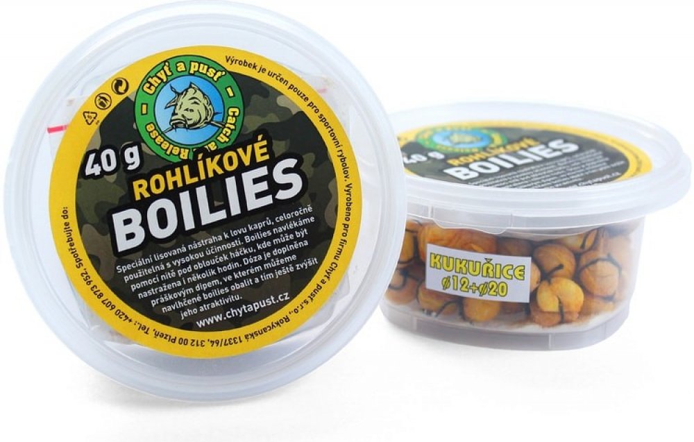 Speciálně pod velkým tlakem lisované rohlíkové kuličky, tzv. rohlíkový boilies, je vyráběn v mnoha příchutích. Nastražujeme pomocí nitěné smyčky do obloučku háčku, kde vydrží dlouhou dobu. Je použitelný s velkým úspěchem po dobu celé sezony. Pro svou vysokou účinnost je velmi oblíben jak ...