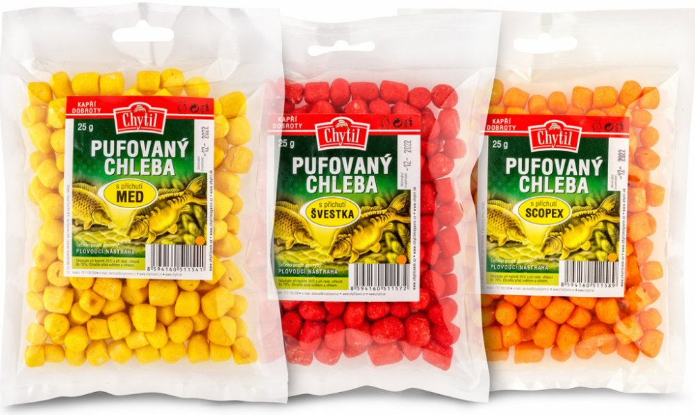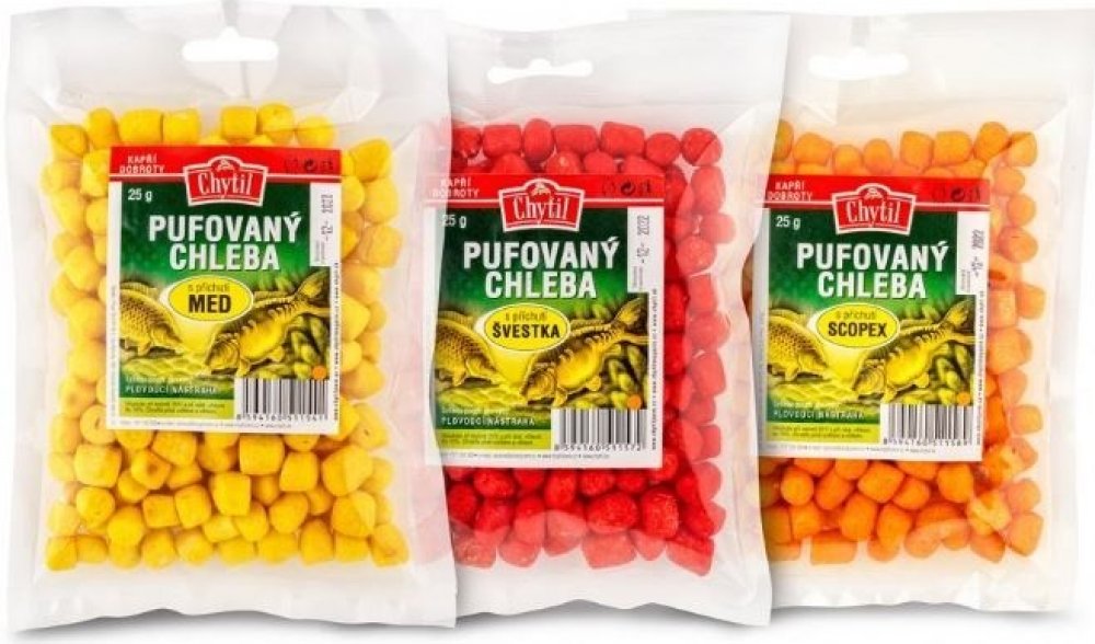 Balení obsahuje různě velké kousky, takže můžete mít nástrahu větší nebo menší, prostě takovou jakou právě potřebujete. Snadno nástrahu přizpůsobíte velikosti a zájmu lovených ryb. Barvy i příchutě můžete kombinovat, což učiní nástrahu ještě zajímavější, a snadno ji můžete umístit i mimo háček, což je skutečně efektivní, protože ta zvýšíte počet bezpečně zaseknutých ryb. Nejčastěji se dočkáte záběrů od kaprů, ale na řece vás může překvapit třeba i pěkný tloušť. Extrudovaný chléb je celoroční nástraha a nemělo by se na něj zapomínat.