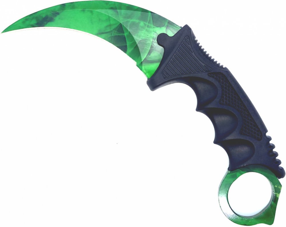Karambit "CLAW OF T-REX" jungle - zelený (CS:GO edice). Tento nůž je vybaven ostrou čepelí o délce 10,5 cm s velice ostrou špičkou. Čepel je vyrobena z nerezové oceli 2cr13, která dodává noži příjemnou váhu (100 g)
