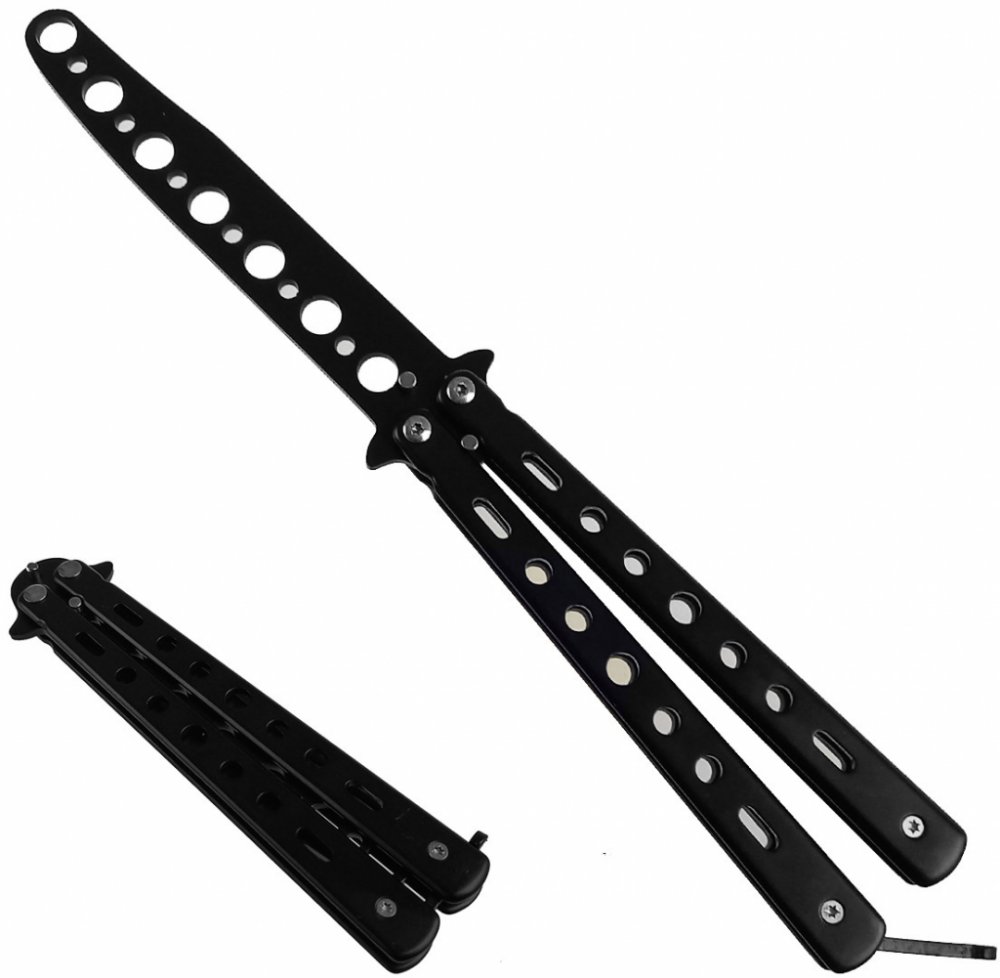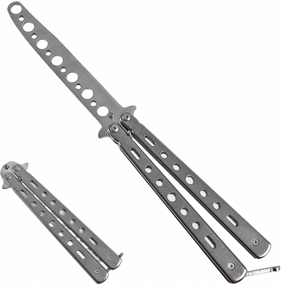 Čepel nože je tupá, abyste předešli zraněním a mohli se bez obav učit i náročnější triky. Celá čepel má 10 cm a je vyrobena z nerezové oceli 3Cr13. Díry v čepeli slouží k lepší vyváženosti nože.