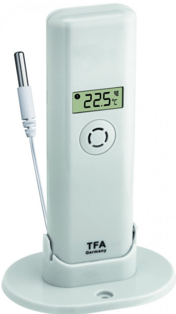 Bezdrátové čidlo pro kontrolu vnitřní nebo venkovní teploty 30.3313.02 ve verzi PRO disponuje vodotěsným kabelovým senzorem pro kontrolu teploty v bazénu, jezírku, lednici, mrazáku nebo třeba akváriu.