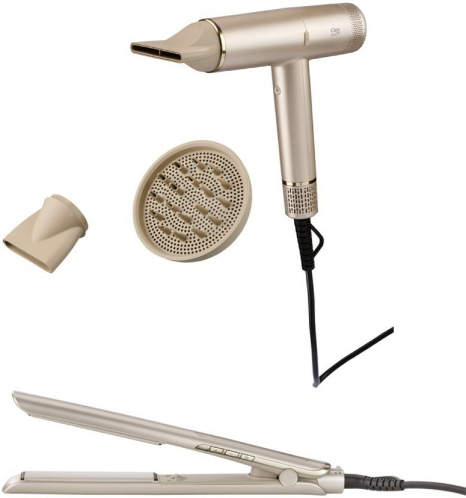 Cien Beauty Sada vysoušeče vlasů s bezkartáčovým motorem CHB 1600 B a žehličky na vlasy Chgl 45 B1, 2dílná Žehlička na vlasy Chgl 45 B1 Cien Beauty Žehlička na vlasy Chgl 45 B1 Vlastnosti Keramická a keratinová povrchová úprava topných destiček Automatické vypnutí po cca 30 minutách Kabel otočný o 360° s poutkem na zavěšení LED ukazatel pro nastavení teploty Paměťová funkce uloží nastavení teploty...