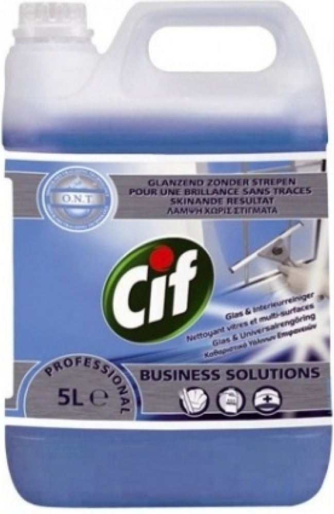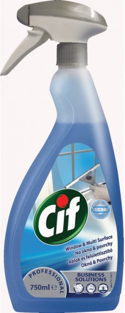 Cif na okna a povrchy rychle odstraní špínu a mastnotu a zanechá zářivý povrch bez šmouh během vteřiny. K okamžitému použití na okna a povrchy v interiérech jako jsou zrcadla, stoly a jiné omyvatelné povrchy. Balení 750 ml s rozprašovačem nebo 5 l.