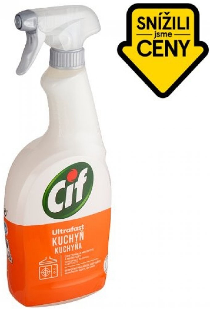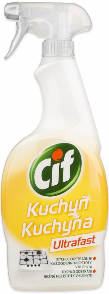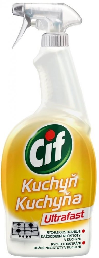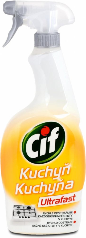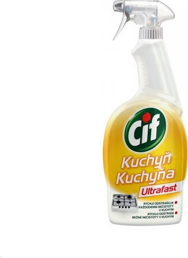 Rychle odstraňuje každodenní nečistoty v kuchyni. Cif Kuchyň Ultrafast čisticí sprej rychle odstraňuje běžné nečistoty v kuchyni a přitom zanechává povrchy zářivé. Nastříkejte, setřete a je to hotové!