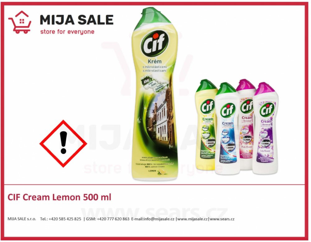 Pořiďte si krémový čisticí prostředek CIF Cream Lemon, který odstraní i neskutečně velkou špínu. CIF je abrazivní přípravek, který zbaví vaši kuchyň či koupelnu zašlé špíny. Aktivní látky produktu pronikají hluboko do skvrn, čímž odstraní i velkou špínu. Prostředek se hodí také na čištění plastového nábytku, kol nebo obuvi. CIF Cream Lemon můžete použít na jakékoliv moderní povrchy v domácnosti. P...