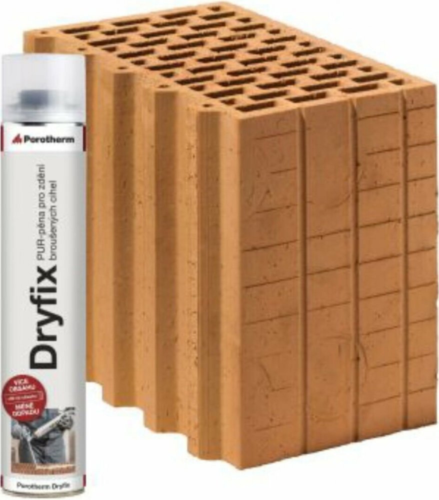 Broušené cihly Porotherm 30 Profi Dryfix jsou určené pro omítané jednovrstvé vnitřní i vnější nosné zdivo tloušťky 300 mm. Lze je též použít pro vnitřní nosnou část vrstveného zdiva. Ke zdění těchto cihel se používá speciální pěna, která se nanáší ve dvou pruzích při vnějších okrajích cihel.PoužitíBroušený cihelný blok pro tl. stěny 30 cm na zdící pěnu.VýhodyIdeální spojení na pero a drážkuNižší pracnost zděníVysoká pevnost zdiva v tlakuLožná spára tloušťky 1 mmŽádné tepelné mosty v ložných spáráchIdeální podklad pod omítkuNízký odpor proti difuzi vodních parHygienicky nezávadnéTechnické parametryRozměry: d/š/v: 247×300×249 mmPevnost: P15Typ: vnější zdivoKonstrukční typ: nosnéRobotická cihla: neCihla pro jednovrstvé zdění: neSpotřeba cihel: 16 ks/m²Spotřeba zdící pěny: 1 dóza/6m²DodávkaCihly Porotherm 30 Profi Dryfix jsou dodávány zafóliované na vratných paletách rozměrů 1180×1000 mm. Počet cihel na paletě je 80 ks, hmotnost palety činí 1220 kg.