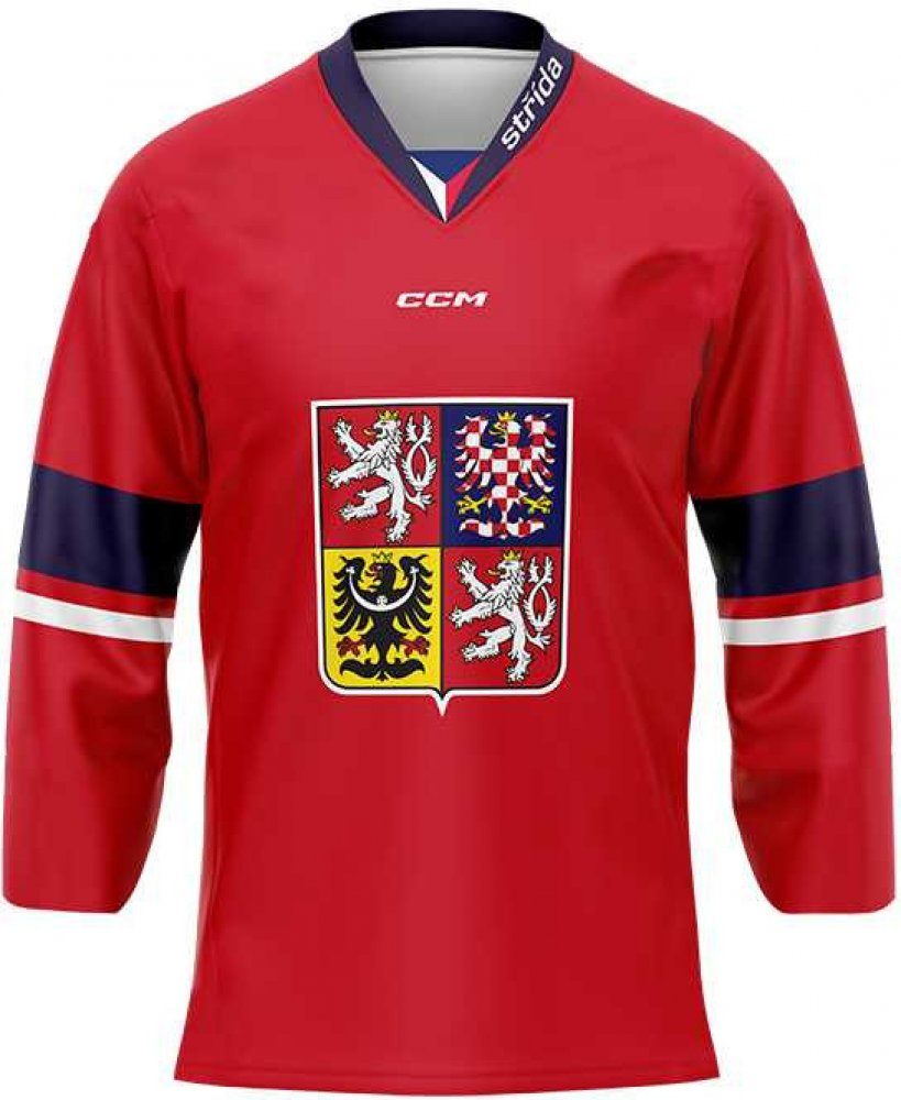 Fandres Český Hokej 23/24 Státní Znak Červený Fanouškovská skladová replika červeného originálního hracího dresu Česka s erbem bez reklam. Složení materiálu: 100% polyester