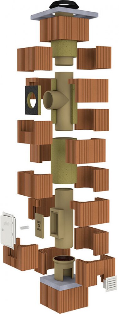 Komínový systém tvoří šamotová vložka, tepelná izolace a keramická tvarovka obvodového pláště. Vnitřní šamotové vložky společně s šamotovou hmotou, která je součástí systému, vytvoří celistvý komínový průduch, odolávající teplotním i vlhkostním změnám. Tepelná izolace, umístěná mezi vnitřní šamotové těleso a vnější nosný obvodový plášť komína má dvě základní funkce. Prvořadým úkolem je tepelně oddělit vnitřní šamotové těleso od vnějších vlivů a zajistit tak co nejrychlejší reakci na zátop a stálý přirozený tah komína, druhým úkolem je dilatace vnitřního tělesa, které v závislosti na teplotě spalin prokazuje objemové změny na rozdíl od objemově stálého komínového pláště. Obvodový plášť komínu je tvořen cihelnými tvarovkami, zděnými pomocí dodávané malty.