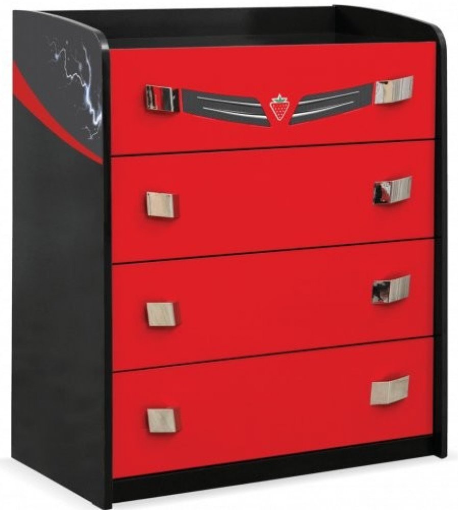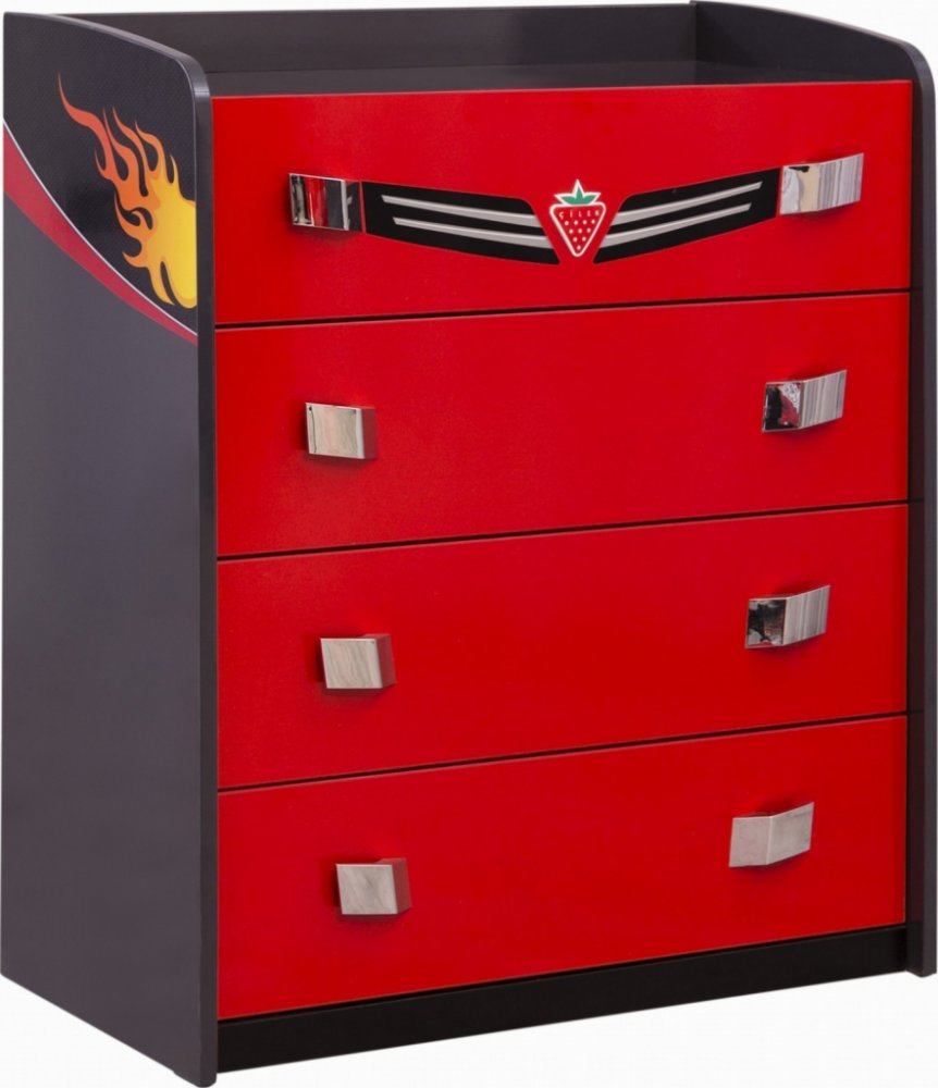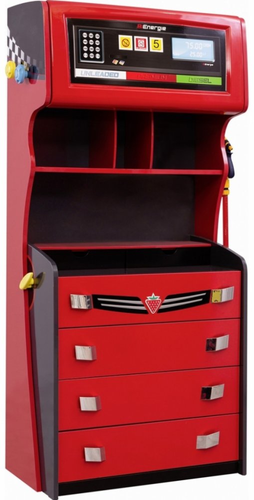 Praktický úložný systém. Čtyři prostorné zásuvky a police s výklopnými dvířky (horní část).