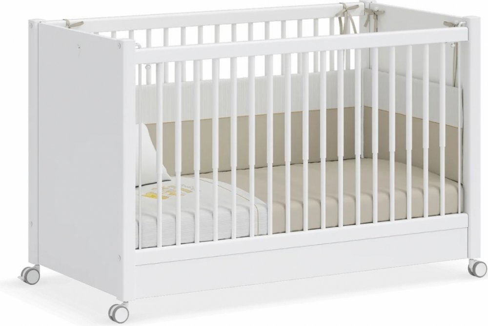 Postýlka na kolečkách 60x120 cm v bílé barvě