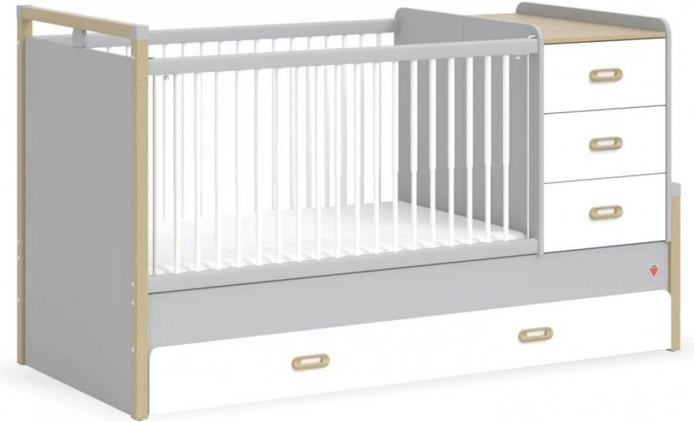 Dětská postýlka a přebalovací pult v jednom, po přestavění navíc vzniknou dva úložné elementy (nika a komoda) a dětská postel do věku přibližně 10-ti let věku dítěte. Neutrální design vhodný do pokojíčku pro chlapečka i pro holčičku.