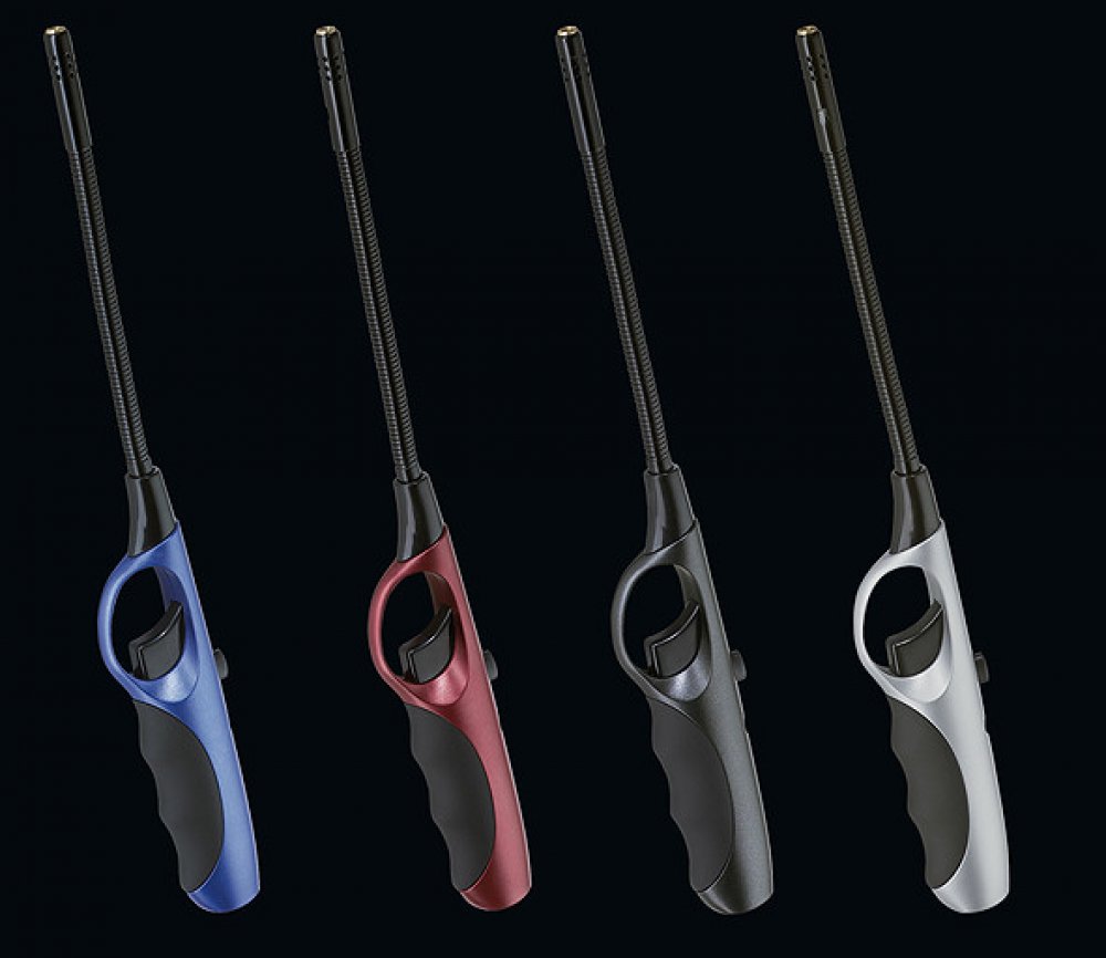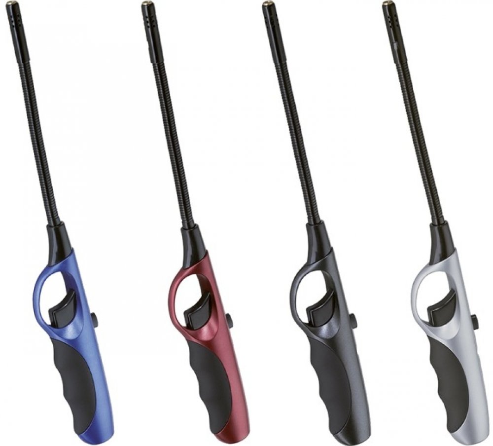 Plnitelný zapalovač v matném chromu s nastavitelnou velikostí plamene.