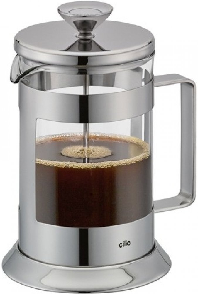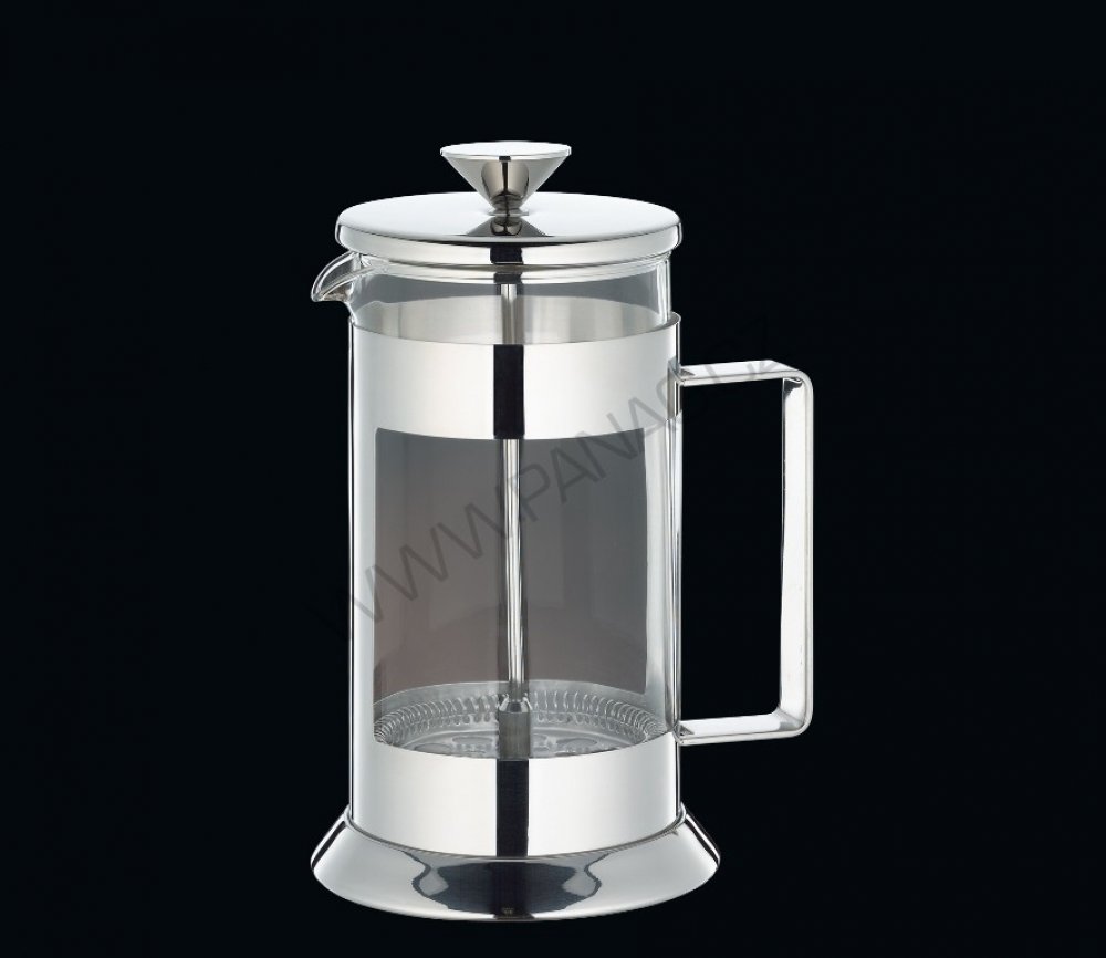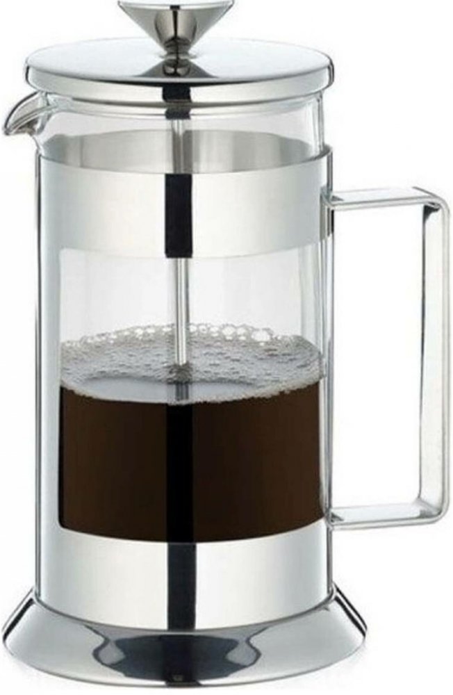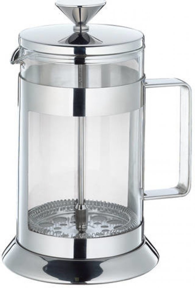 Stlačovací French press z vysoce kvalitní leštěné nerezové oceli a skla. Víko z leštěné nerezové oceli pevně sedí a má velký knoflík, kterým lze snadno přitlačit filtrační tyč. Velká rukojeť z nerezové oceli drží kávovar pevně na svém místě. Skleněná nádoba je vyrobena z borosilikátového skla, a proto je zvláště odolná vůči teplu.